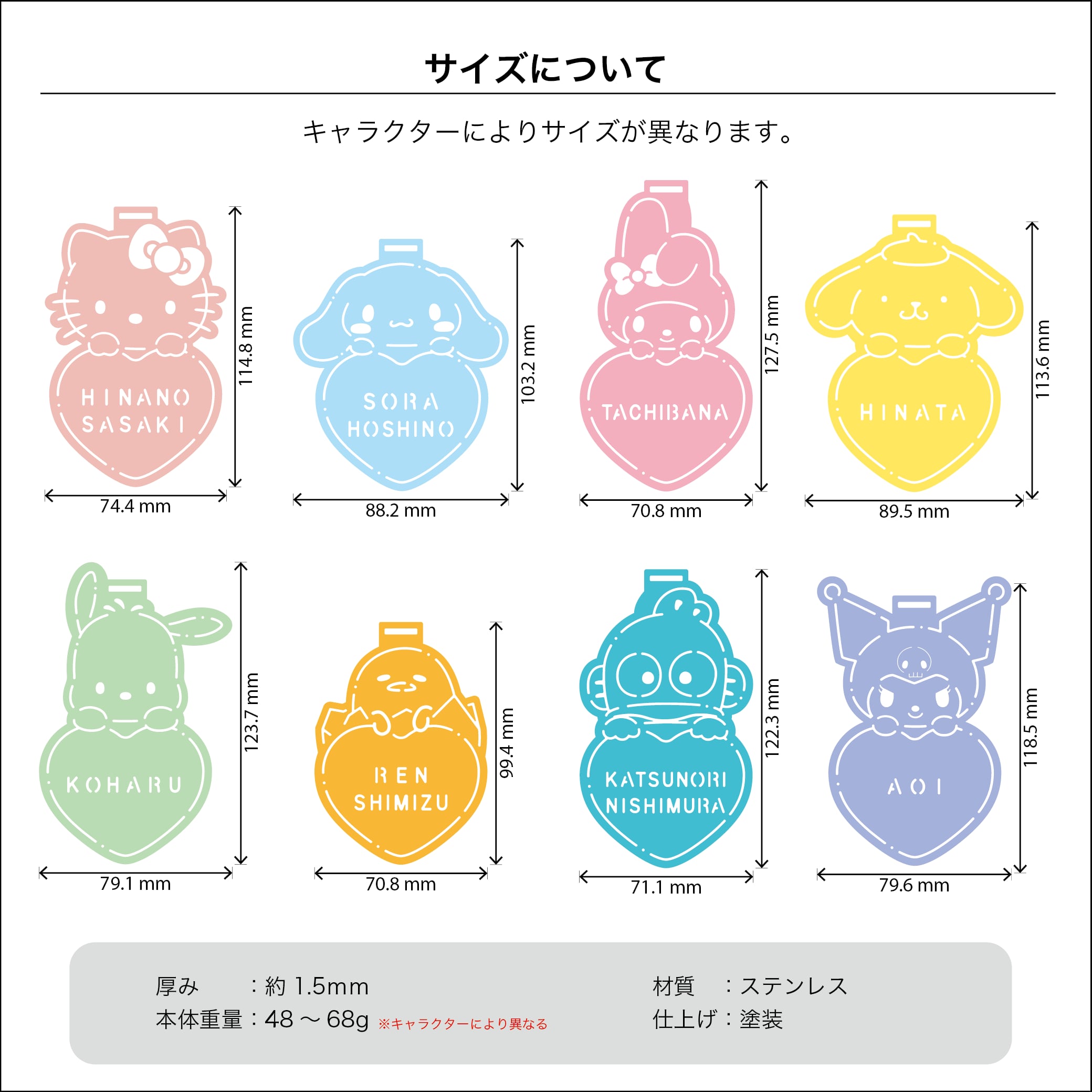 サイズ:最大 約128 × 100mm ※キャラクターにより異なります